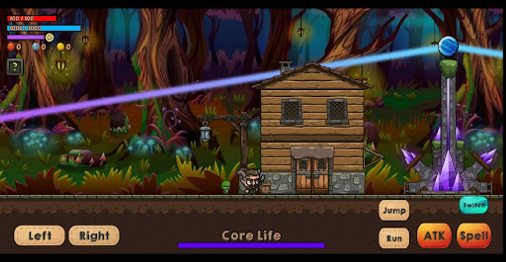 It's a 2d game where the goal is to defend the Monolith in the center of the village but be careful, a portal on each side makes enemies appear. You will have various constructions, kinds and improvements to progress to the next wave.