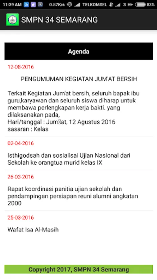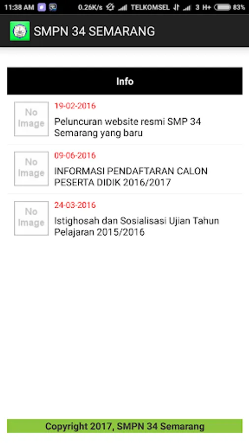 Fitur news ini terintegrasi dengan web SMP 34 Semarang yang berfungsi untuk memberikan informasi secara real time mengenai berita dan pengumuman yang diumumkan melalui web smp 34.