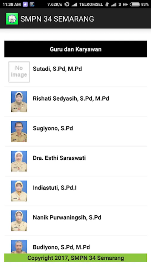 Fitur Staff ini terintegrasi dengan web SMP 34 Semarang yang berfungsi untuk memantau nama staff yang mengajar di dalam SMP 34 Semarang.