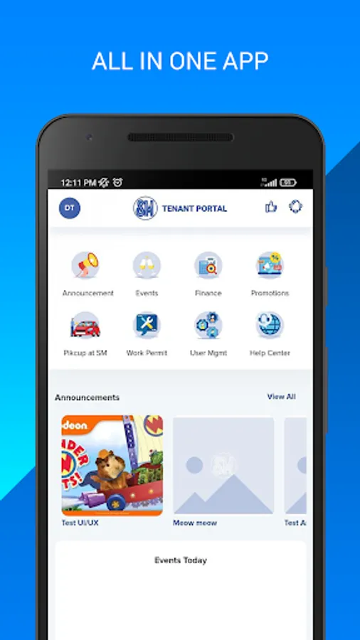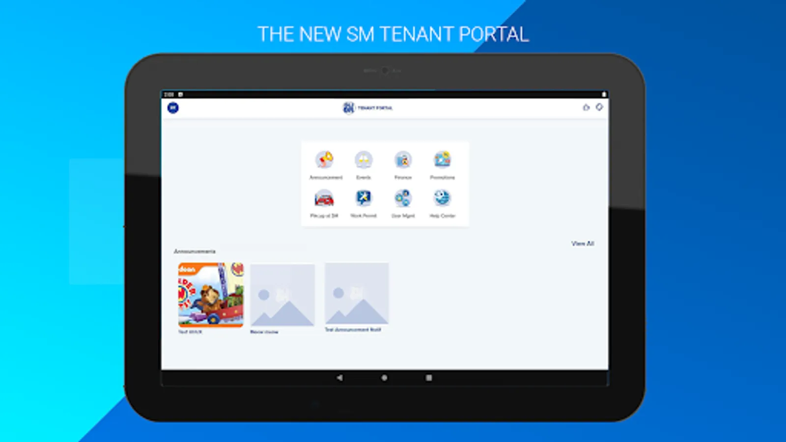 SM Tenant Portal is an app enabling "physical" mall tenants with capabilities to access the Announcements, Events, Promotions, etc. It is a centralized communication channel between SM and our tenants. This is available on the website and mobile applications and is accessible 24/7 on any device.