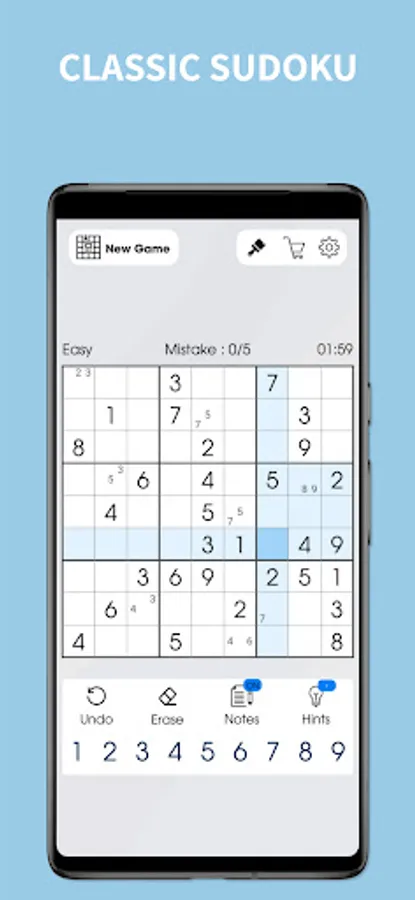 Sudoku Online is a handy way to test your Sudoku skills. Whether you're a Sudoku guru or you're playing Sudoku for the first time in your life, the rules are simple. At the beginning of the game, you will have a grid divided into nine squares of 3x3 cells each. Some cells are already filled with numbers. Your task is to fill the entire grid with numbers from 1 to 9 so that the same numbers do not occur in one line, row or square. Play Sudoku and have good luck!