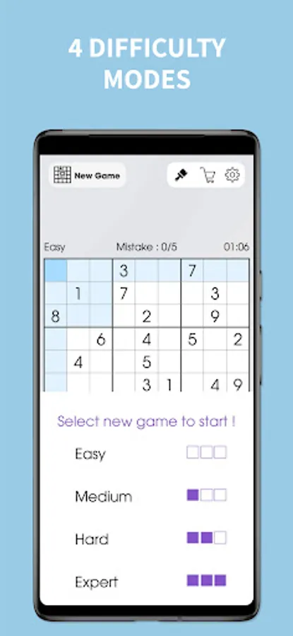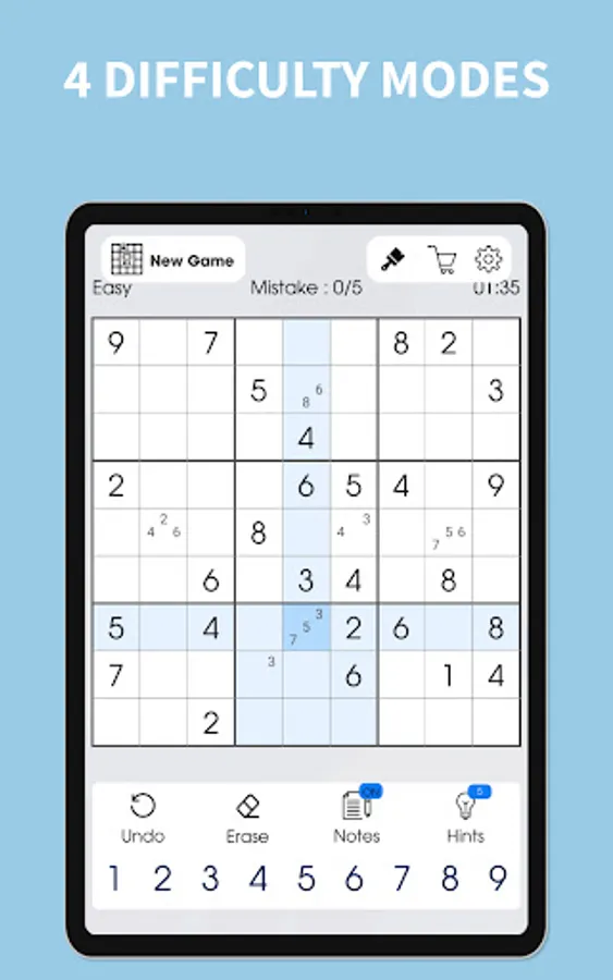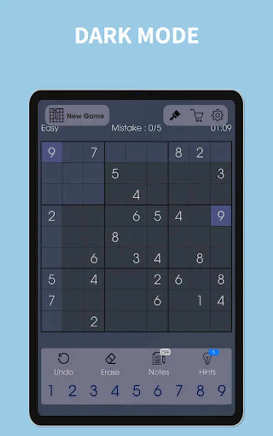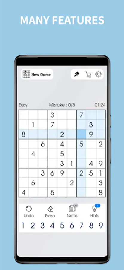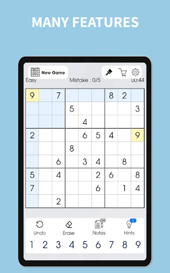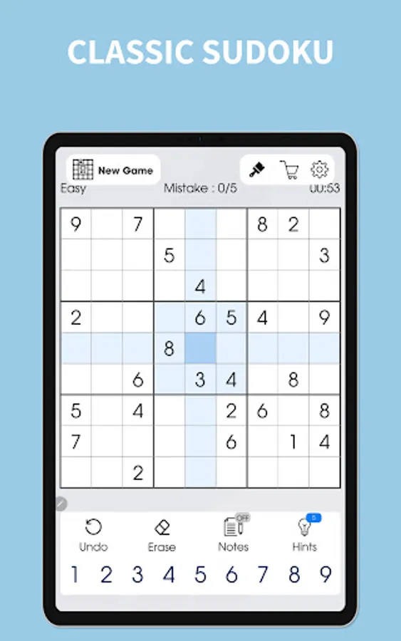 Sudoku is a great way to pass the time and practice your logic skills. Sudoku puzzles have four basic rules. The same numbers should not occur, firstly, in the same line, secondly, in the same row and, thirdly, in the same 3x3 square. The fourth rule is: the sum of the numbers in each row, line or 3x3 square must be equal to 45. Sudoku is not a puzzle for guessing numbers, here you need to count and analyze the arrangement of numbers. Invite your friends to play Sudoku together or compete against the clock!