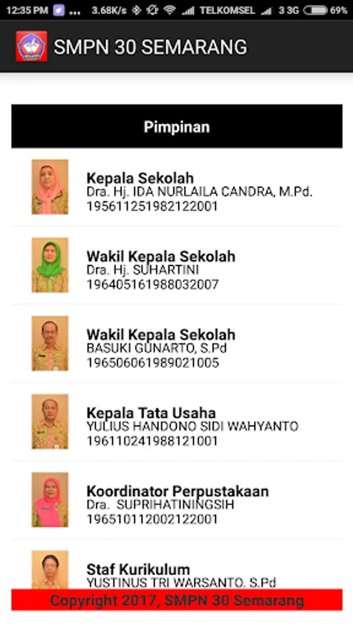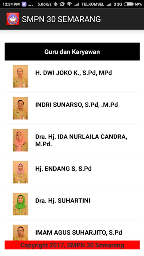 Fitur Staff ini terintegrasi dengan web SMP 30 Semarang yang berfungsi untuk memantau nama staff yang mengajar di dalam SMP 30 Semarang.