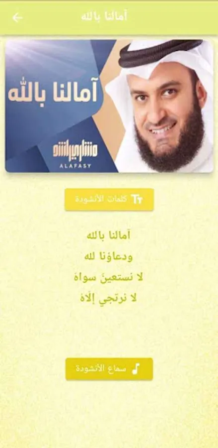 The application of Nasheed Our Hope in God mp3 presents you the most beautiful Islamic chant with a wonderful, sweet, dewy voice, the voice of Mishary Rashid Al-Afasy and Rashid Al-Majed.