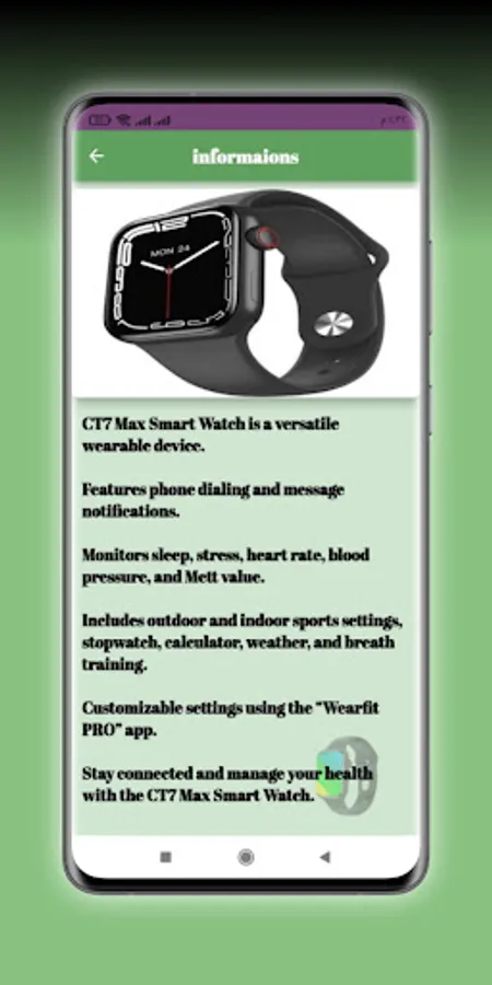 - Are you looking for a description of the type of Smartwatch CT7 max ?