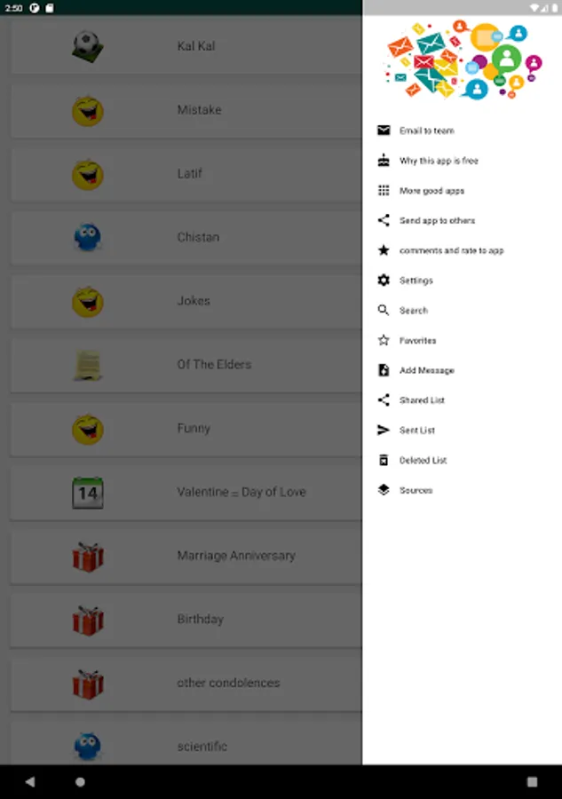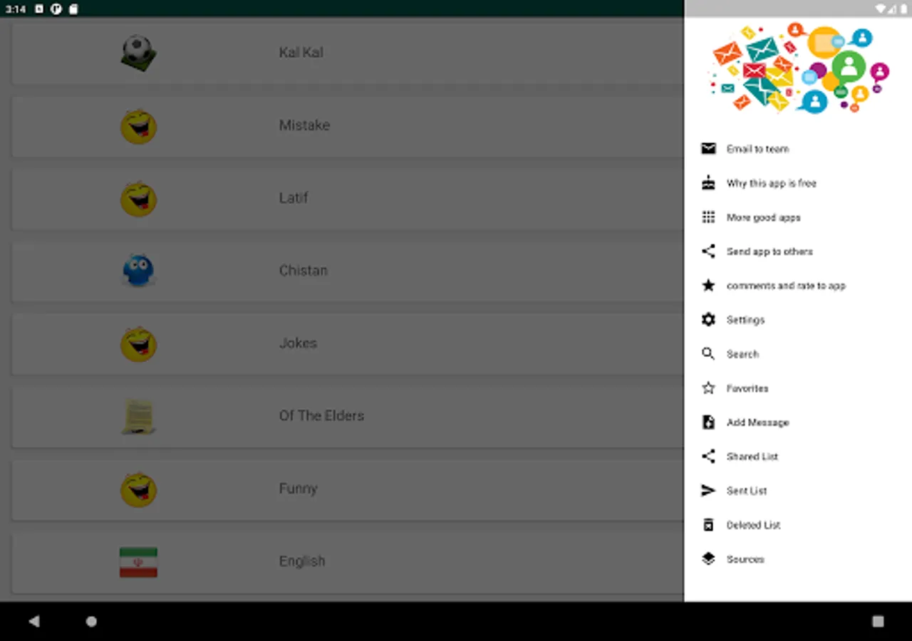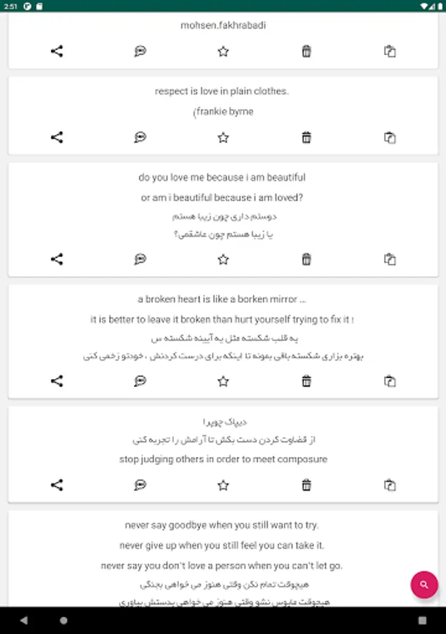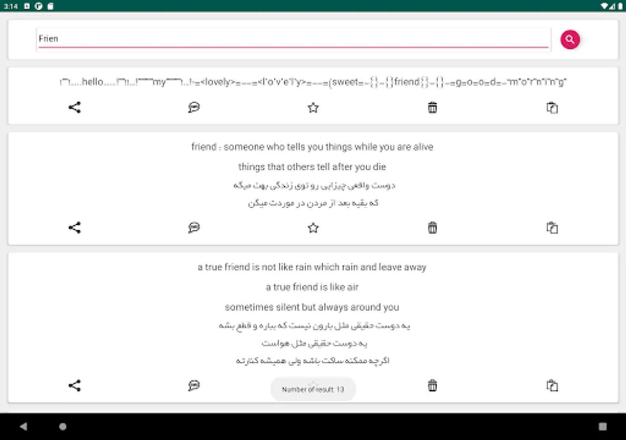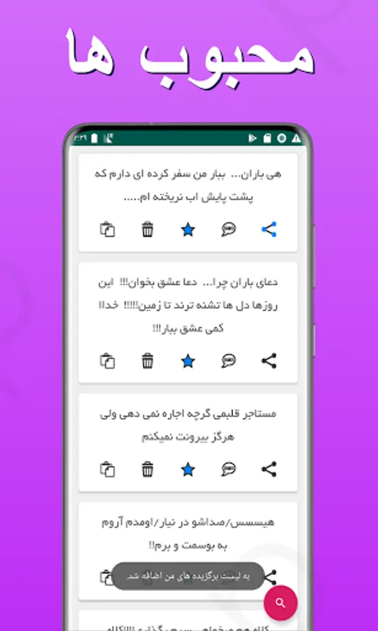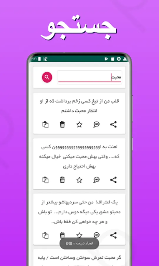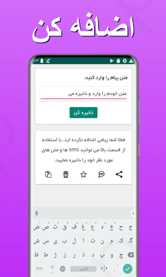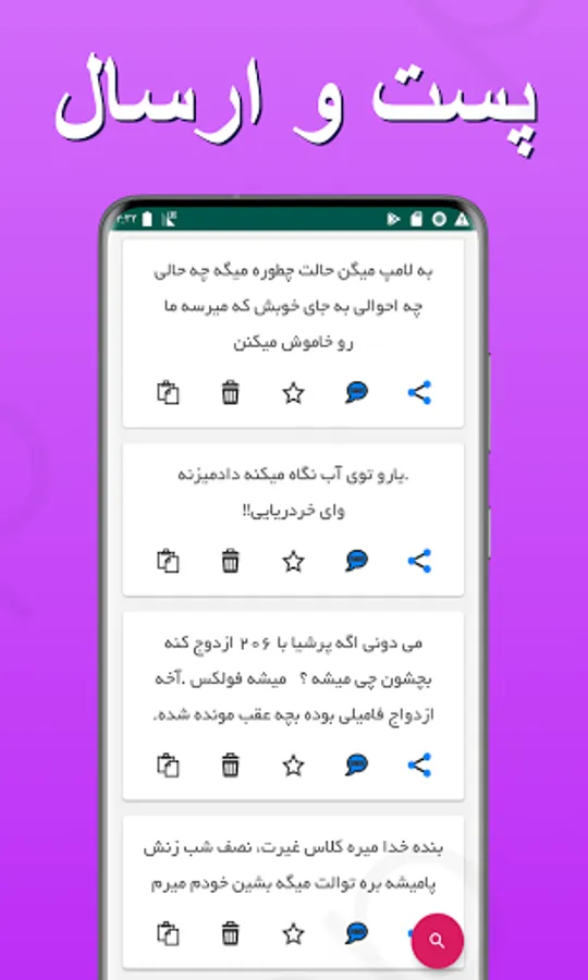 With the send button, you can use the content of the program in all social networks, including Telegram, Instagram, Tik Tok, and others, or send the best SMS to your wife, friends, acquaintances, and family.