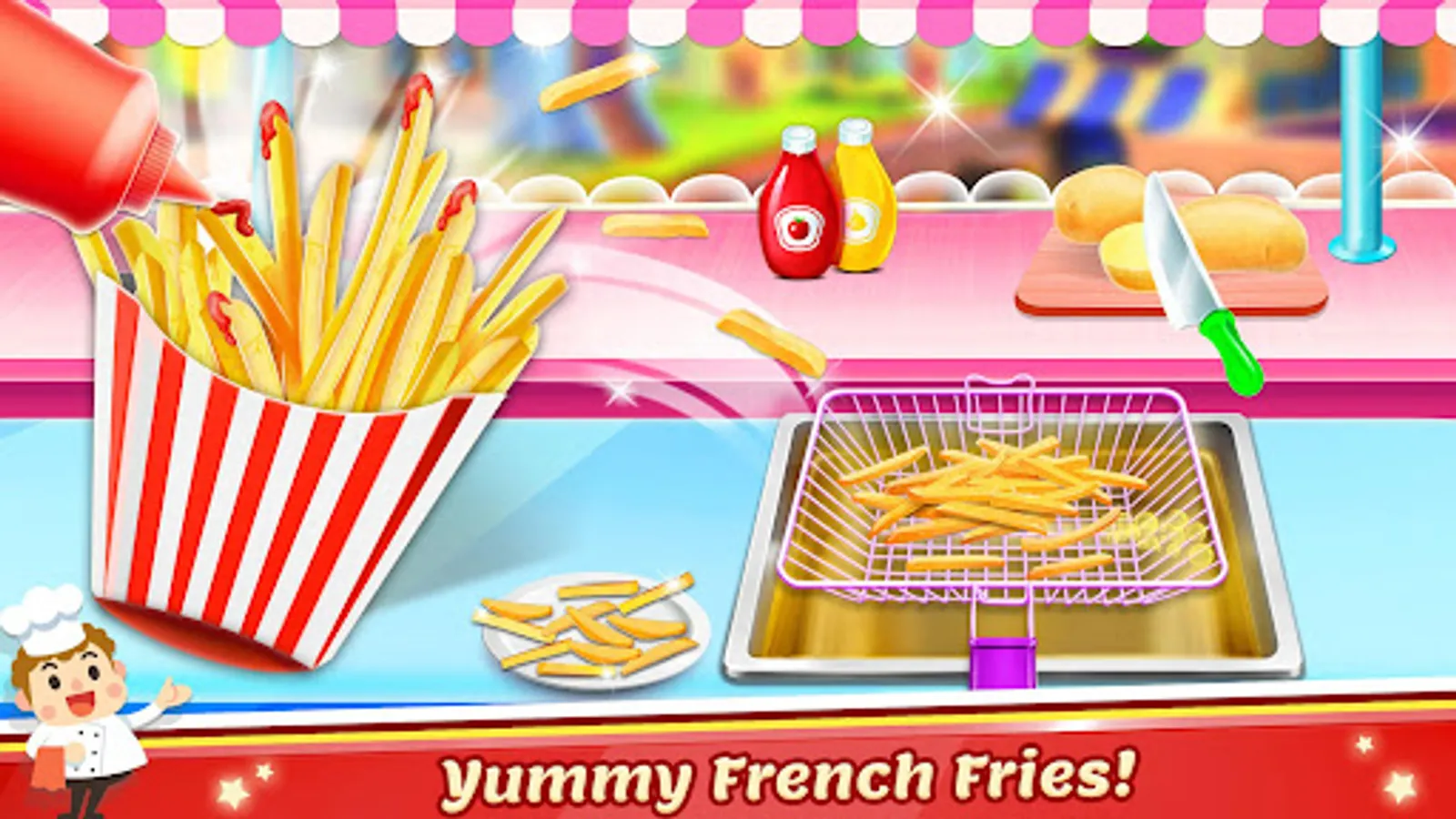 Let’s fill your plate with amazing tasty spicy treats from the street food chicken games. Take the yummiest fried chicken piece with hot crispy potato chips and pour your favorite sauce on them. Have the most wonderful carnival food chicken cooking games experience. One by one unlock many exciting levels and enjoy crispy snack maker kitchen games. Have fun and enjoy street food cooking chicken games.