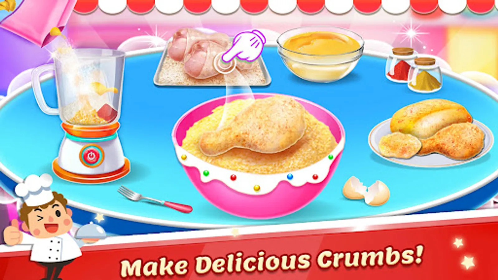 In this Fry Chicken Maker - Cooking Games you can enjoy tasty deep fry cooking and flavorful street food also with many different meats of cooking street food chicken games. Finger licking Street food cooking of tasty beef, tender nuggets, chicken breast piece, chicken thigh and leg piece will double the fun of fast food chicken cooking and eating. When the sweet aroma of chicken wings comes out from your crispy snack maker kitchen everyone will go crazy to taste them.