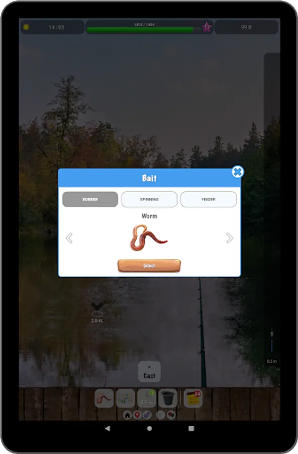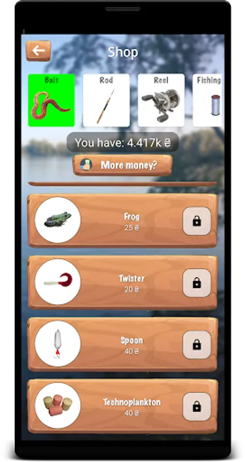 In the in-game store, you can buy tackle, bait and other accessories for virtual currency, which can be earned by selling the fish you catch. During fishing, some tackle may break, so it is possible to repair them.