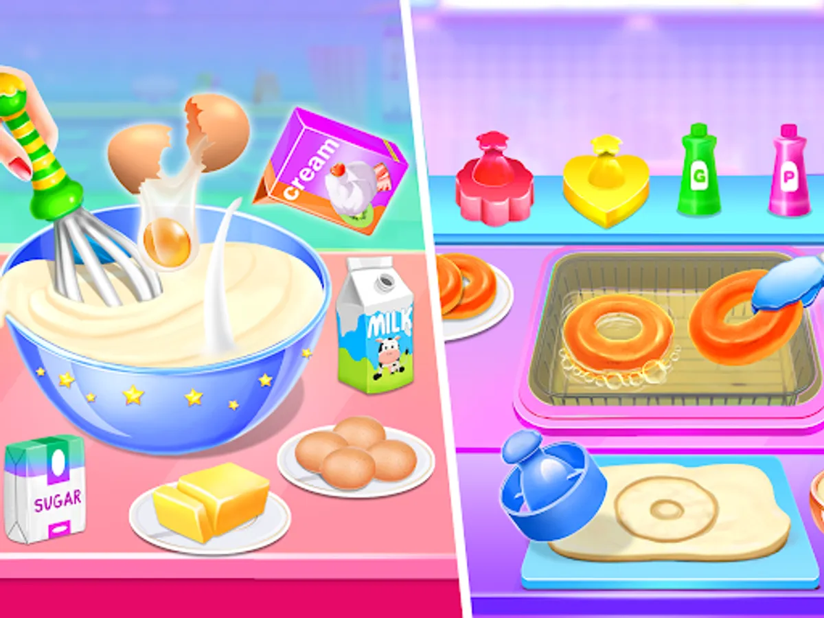 Bring donut making ingredients to the cash counter of donut bakery of the store and the ingredients to your home kitchen bakery to relieve your hunger and be the best sweet donut maker and sweet dessert chef. Enter into donut shop games and visit the lovely unicorn donut dessert maker kitchen and get ready for nonstop enjoyment of donut game. Interesting modes of sweet bakery doughnut game food cooking games give you hours of entertainment through donut bakery games.
