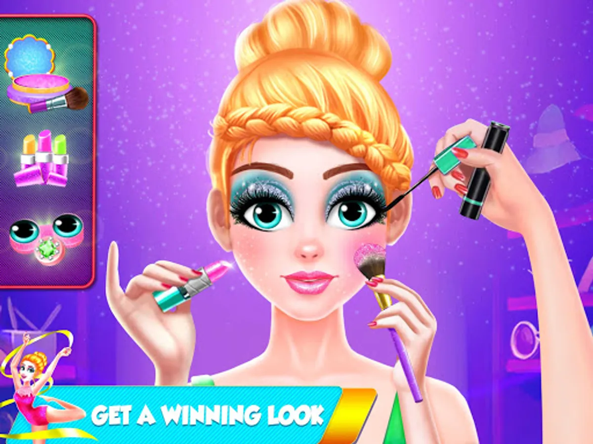 Win the medal and be the rhythmic gymnastics woman in the world’s best dance school. Go for some makeover and put on the makeup to get ready for the ultimate dance battle fun in girl's makeover games. Now, it's time for the hairstyle. Choose different hairstyling options and dresses that will suit you as a gymnastic girl. Wear your favorite shoes and bands that go with your outfit. This is the biggest competition of the year! Be your own choreographer teacher and make your way toward the final battle.