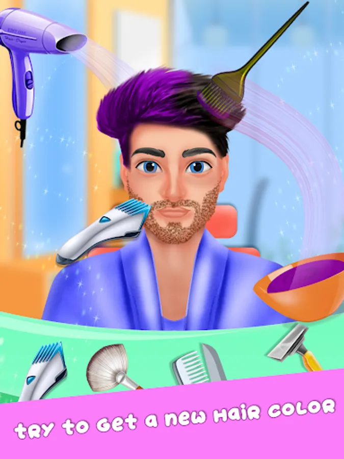 Now boys can do the heavy task without touching any dangerous machines at the barber shop. These slight barbers can have fun at a beauty hair makeover shop without getting intact with any sharp tools. Get into the task of your choice and enjoy crazy beard salon games for boys in which you perform hair cut and hair color change. Here in this beard and hairstyle salon game, you will experience real-life styling and makeover by selecting your desired character to give him a fancy makeover in many different ways of hair games and hair salon games.