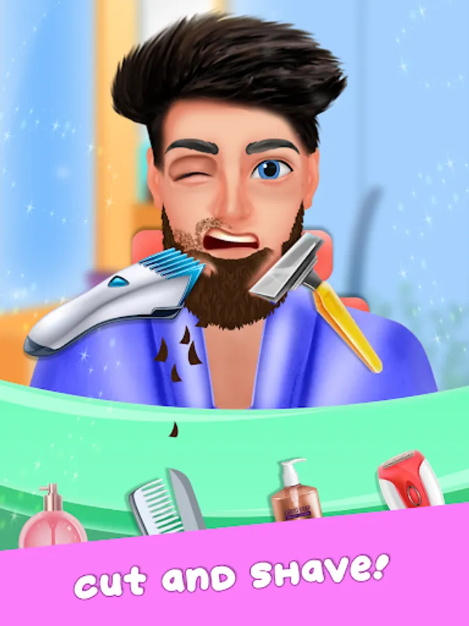 These fancy hair & beard salon games, let’s follow easy steps and create a masterpiece by just using your imagination and giving them a way to come out. First, wash the hair, color them, and make a lovely style. Choose the amazing dress-up and cool stuff for an impressive look. So be professional and creative and earn points as well. Let’s have the best barber shop, and start the crazy beard trimming of your customer. Apply foam gently on the face and then shave it. In this hair stylist game and beard makeover station be your own boss and try new styles and cuts. Show the world a new you and carry out your passion. Enjoy...