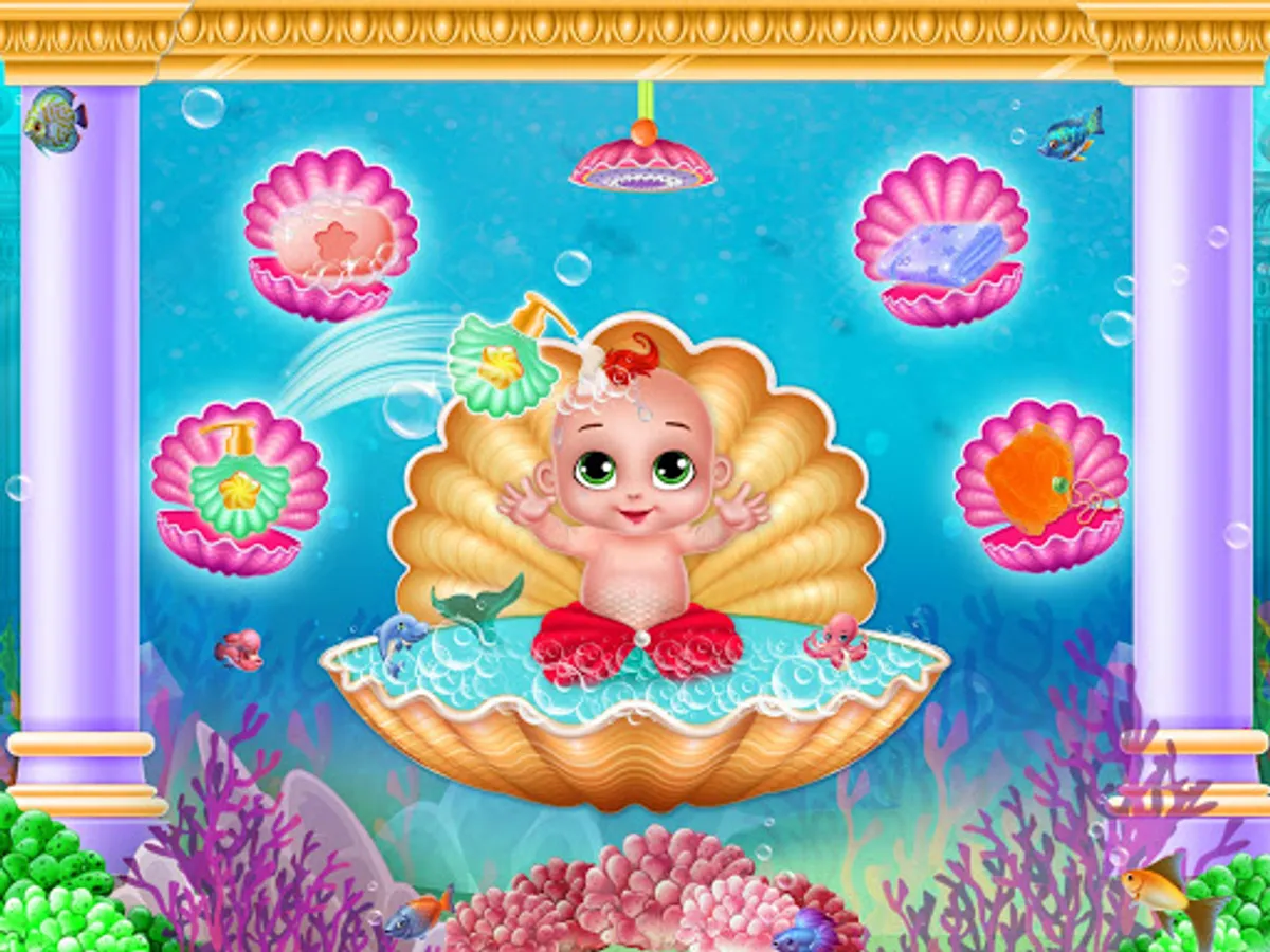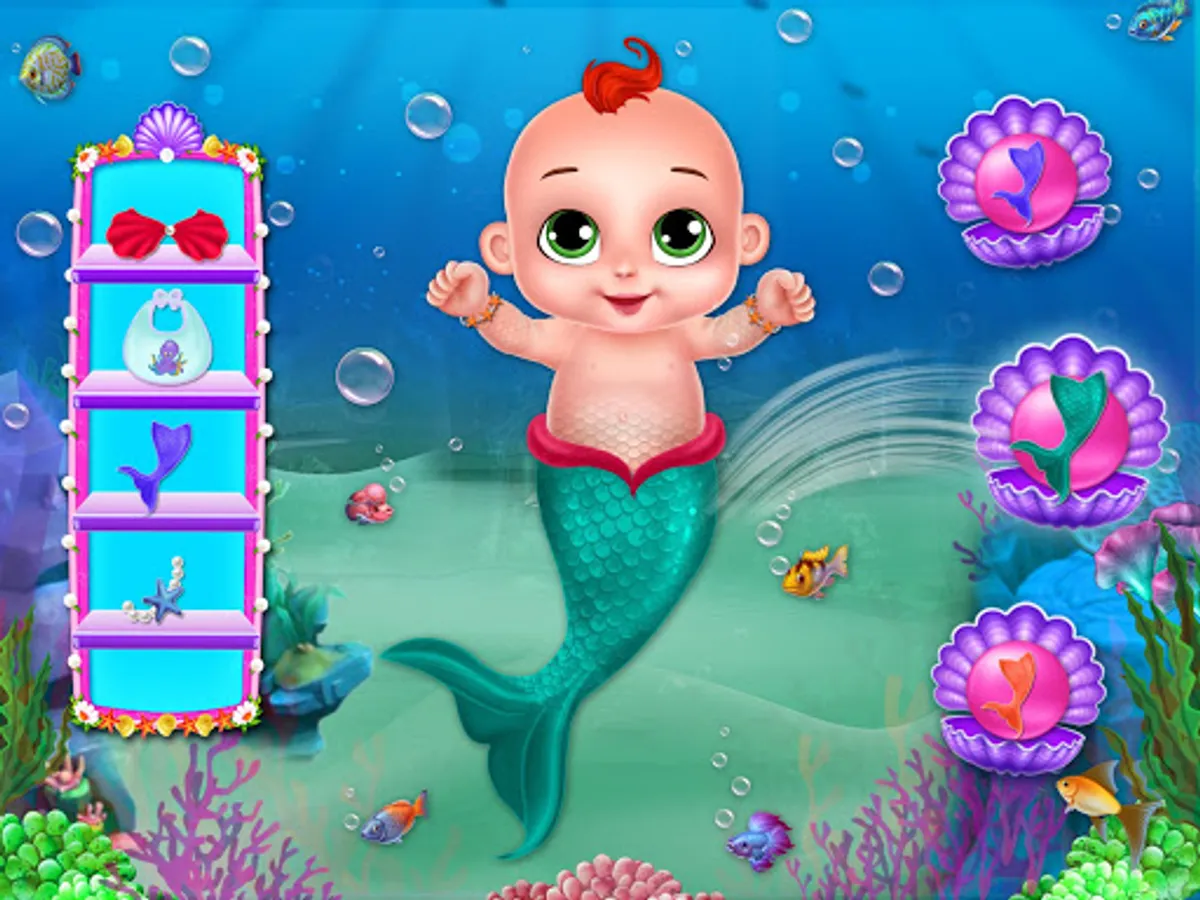 There are still a lot of tasks to do. Style with tons of fancy items and feast your eyes with a whole lot of gorgeous tails in various styles. Dress up as a mermaid to enjoy the undersea adventure. Change the dress of the mermaid mommy now. Play with the mermaid girl and enjoy the mermaid game. She is tired now. Give her the bubble bath with toys to make her clean and take care of the super cute princess mermaid with a ton of cute and funny expressions. Now the princess wants to do some underwater ocean activity. Give her the coloring puzzle book and get her busy for some time. Decorate the mermaid princess crib as well with different items to select. Be a nice mermaid hair dresser and change the dresses of the princess mermaid accordingly.