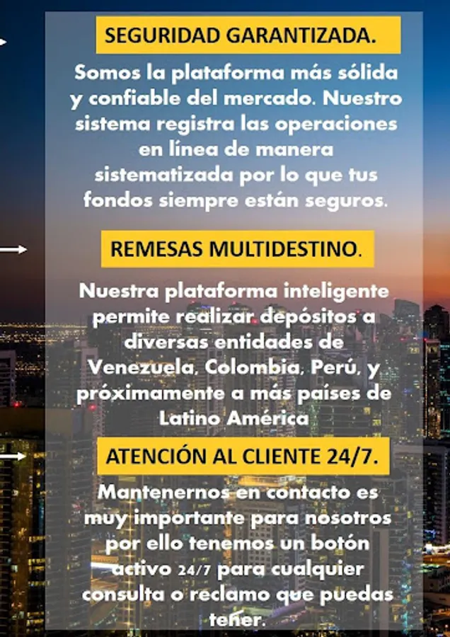 Our intelligent platform allows deposits to various entities in Venezuela, Colombia, Peru, and soon to more Latin American countries.