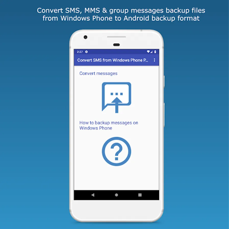 Convert SMS from Windows Phone PRO: convert any MMS, SMS and group messages backups from Windows Phone as Android message backups, right into your Android Phone messaging storage.
