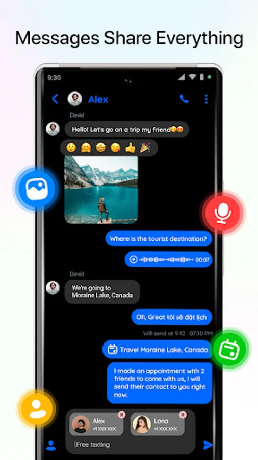 Let Messenger App- Text SMS be the person who sends love messages and connects you with them .