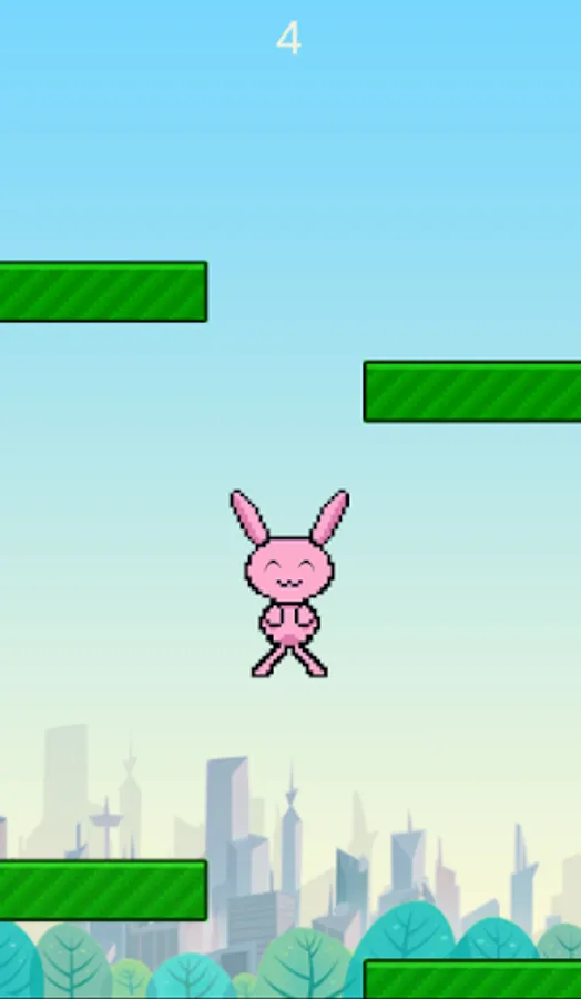 Help pink bunny jump nonstop and don't let him crash into moving blocks.