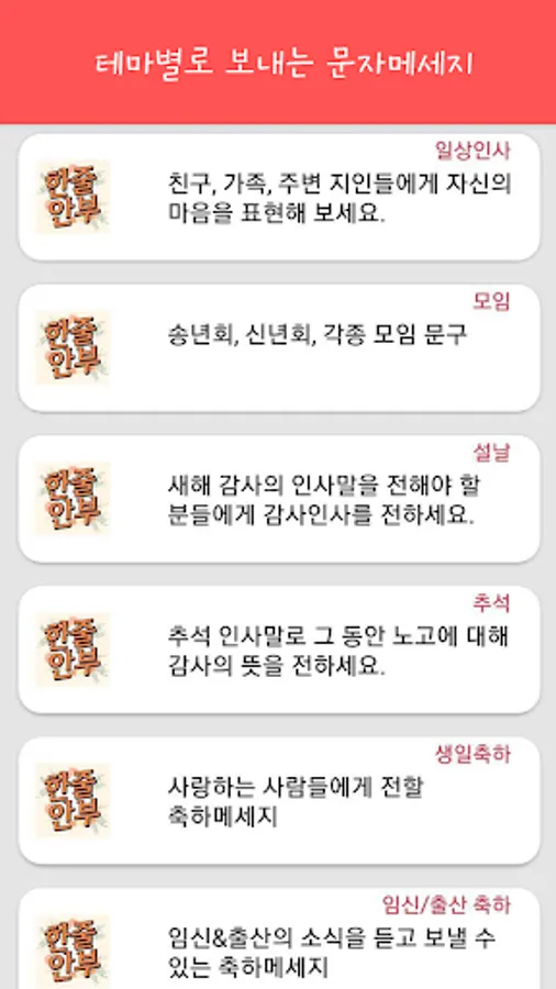 (Daily Greetings / Meetings / Year-end Party / New Year's Party / New Year's Day / Chuseok / Happy Birthday / Pregnancy / Childbirth / Graduation / Valentine's Day / White Day / Mother's Day / Teacher's Day / Christmas / SAT)