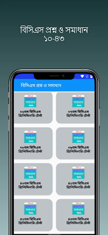 আমাদের এপ টিতে বি সি এসের প্রশ্নের সয়ামাধান দেয়া হয়ছে । সিলেবাস অনুযায়ী অংক (math ),বাংলা(Bangla), সাধারন জ্ঞান(General knowledge ) , ইংরেজি( English ) , সাধারন বিজ্ঞান
