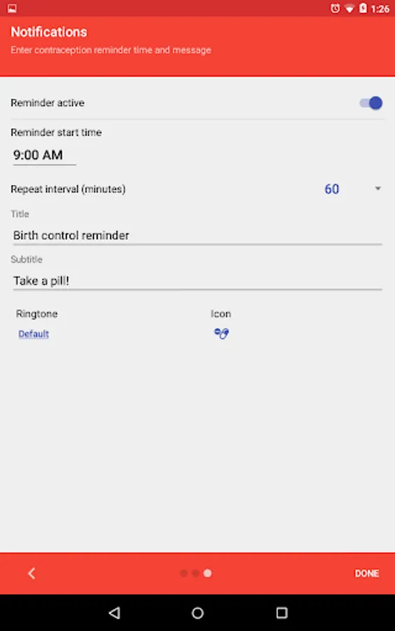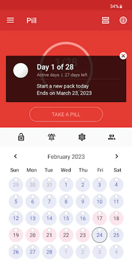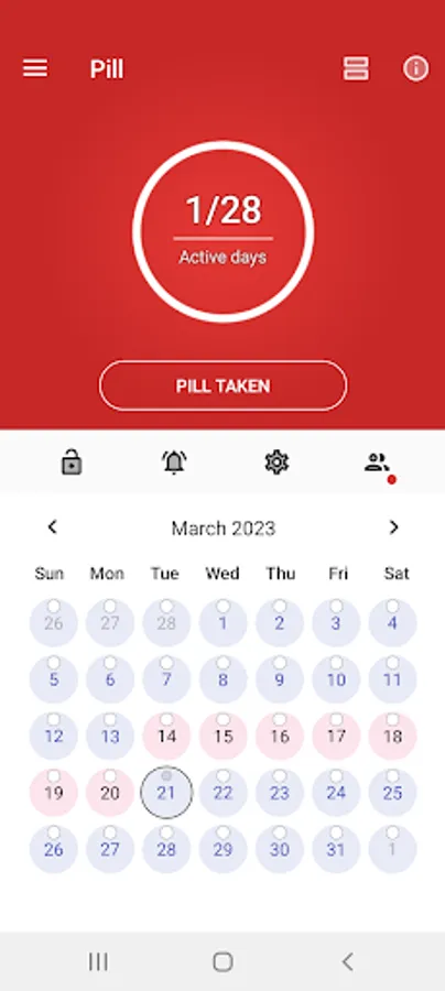 - Daily pill remainder, automatically preset to pause on break days during your period