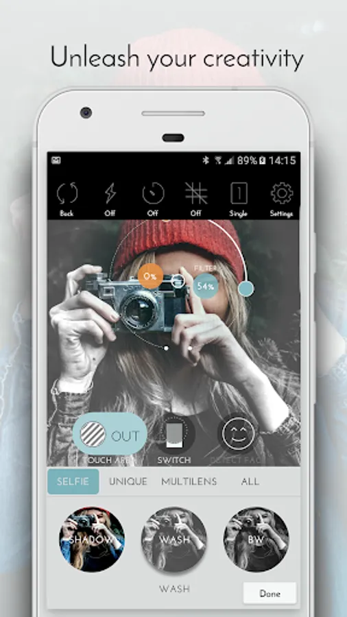 Create beautiful collages with different masks, vignettes and filters. Let out your beauty and creativity with Selfie Expert Camera.