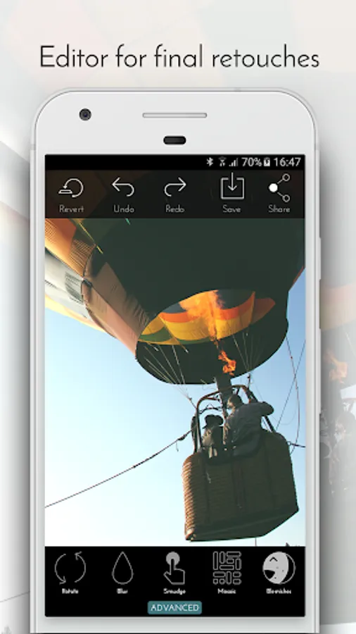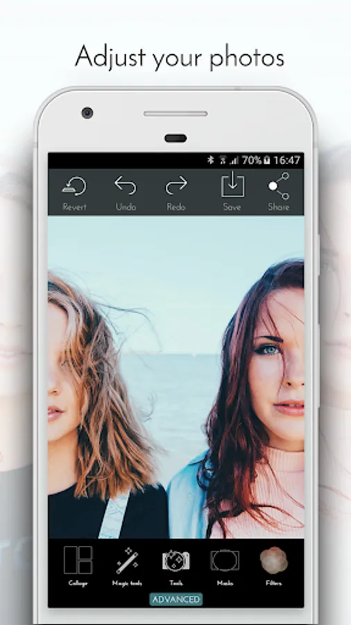 For the first time on mobile, Selfie expert Camera is bringing you the Magic Tools. Magic Tools allows you to pick an area where to apply the filter and leave the rest of the photo intact. You can also use Face Detection so the filter is applied only to your face. Have fun and explore the endless possibilities of Magic Tools.