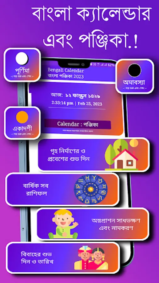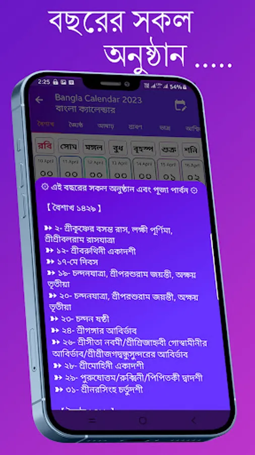Our App offers Bengali Calendar with Monthly Bengali Calendar for Kolkata, West Bengal, India, Bangladesh. It includes Hindu Fativals Jagadhatri, Puja,Rash Yatra,Jatra Guru Nanak, Birth tithi ,Chelam akheri-cahar shumba, Ekadashi,Dadashi,Amabashya,Purnima and Islamic Events Festivals Holidays and other events for the current year 1430 and upcoming year 1431.
