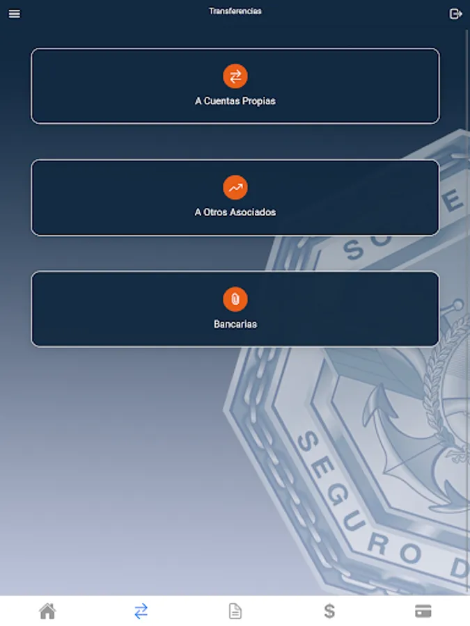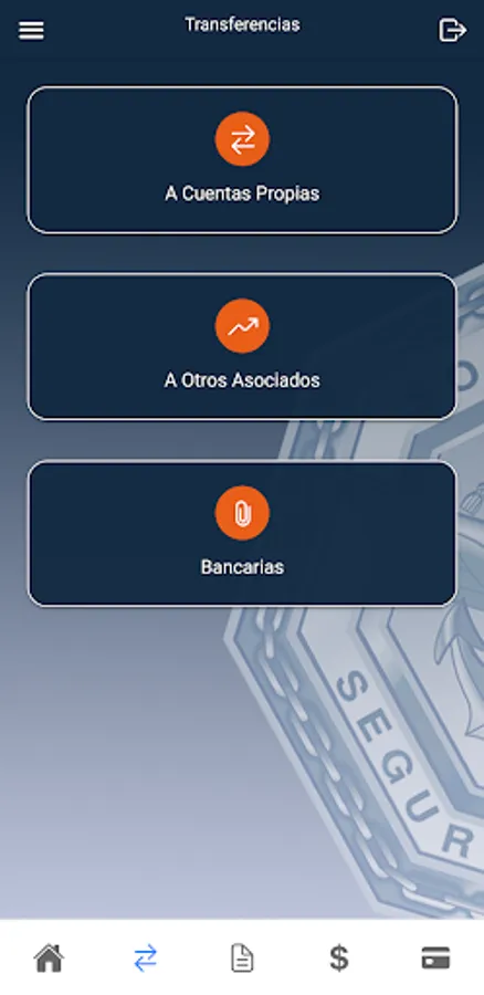 Transfers: Allows you to make money transfers between your accounts, to an account of another associate, or to a bank account. Keep in mind that according to the amount to be transferred, the system may request data from your coordinate card.