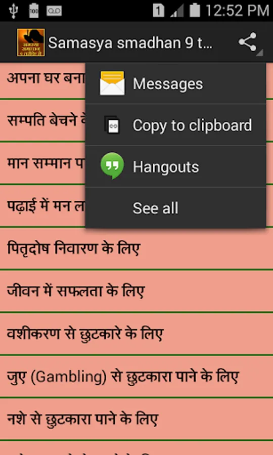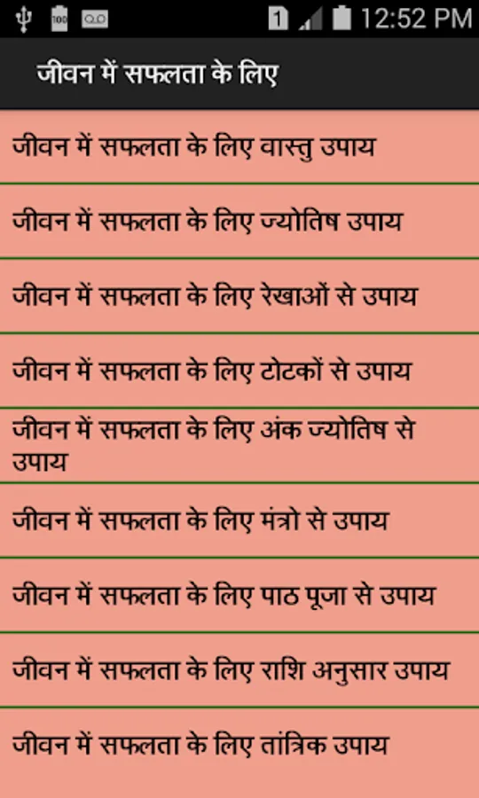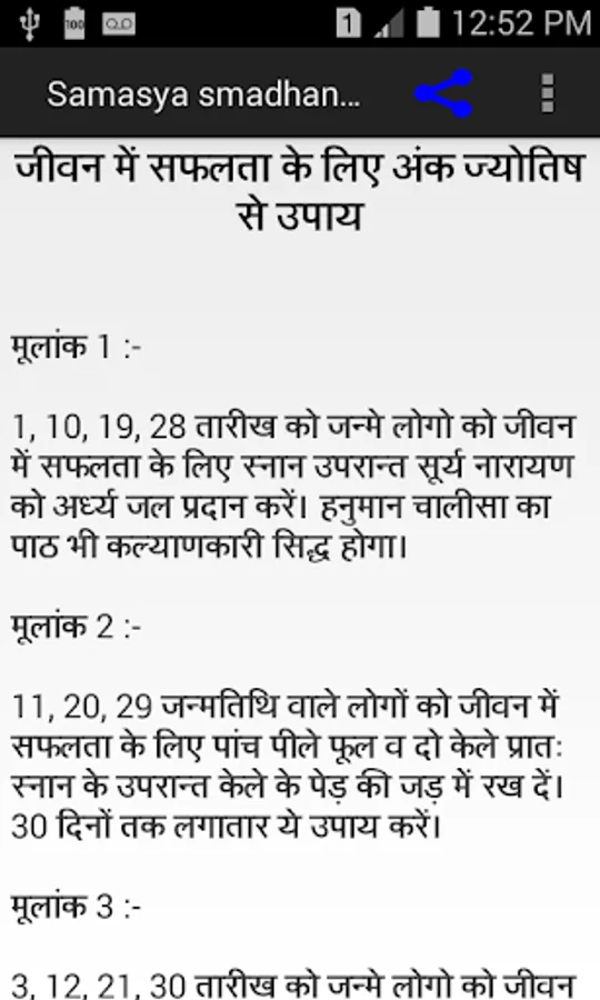 इस एप्लिकेशन में दिन-प्रतिदिन की समस्याओं के बारे में उपाए है जैसे की नौकरी के लिए, बच्चे के लिए,