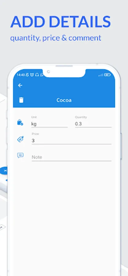 ✔️ Add unlimited products to your list with details including quantity, price, and comment