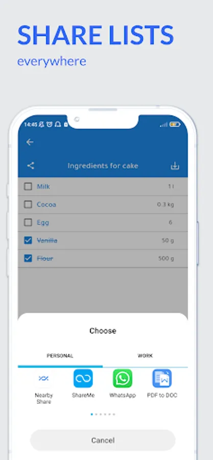 ✔️ Create your shopping list and grocery list easily and name it as you want.