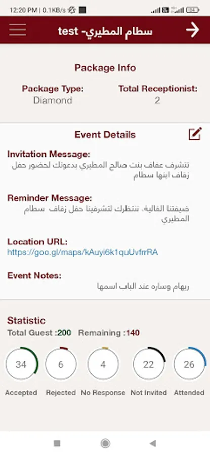In this application, you can see statistics about each guest and event as well. It also has a receptionist part where scanning QR code card is done in order to update guest statistics.