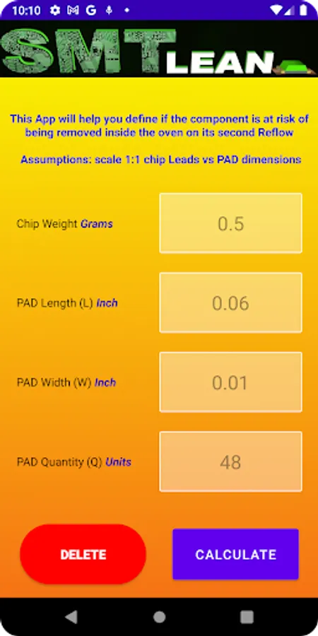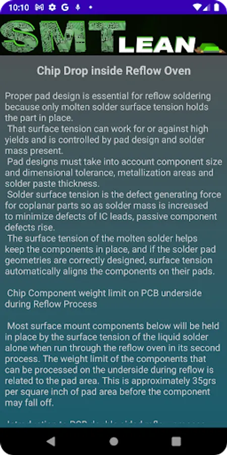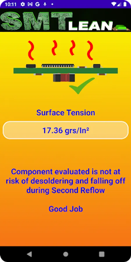 Let's to evaluate if your Component is in risk to be desoldered during their seconf Reflow Process. Most surface mount components will be held in place by the surface tension of the liquid solder alone when run through the re-flow oven second process. This App will support you...