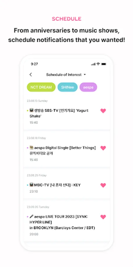 From SM artist anniversaries to music shows, schedule notifications that you wanted!