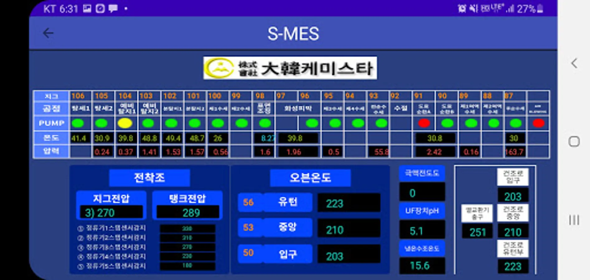 생산진행현황, 온도모니터링 등 확인할 수 있습니다