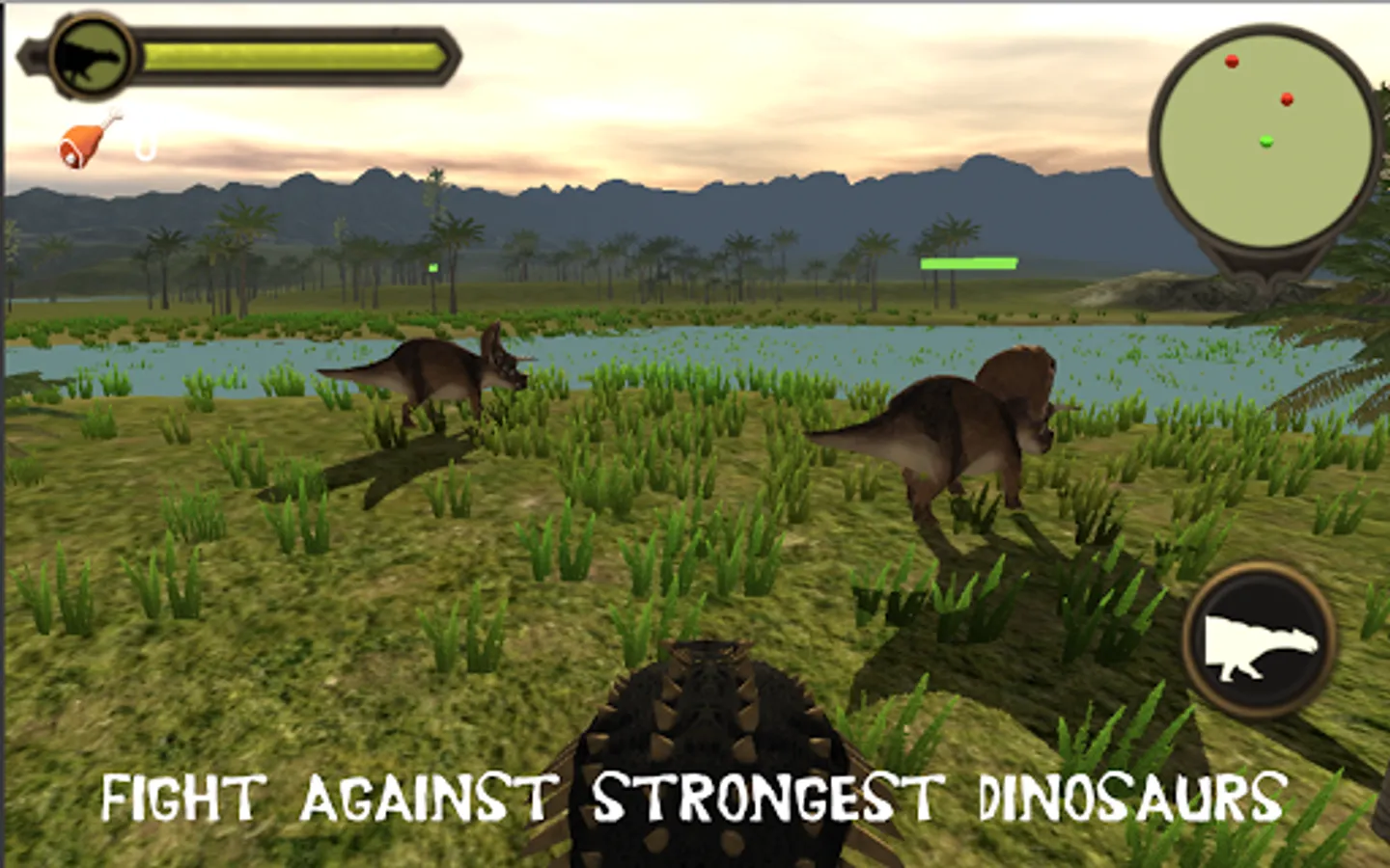 Take control of Ankylosaurus and survive in huge jurassic world. Use your claws and mighty tail and attack other dinosaurs, collect meat, grow and upgrade your skills. Ankylosaurus simulator is 3D game set in prehistoric jurassic world full of prehistoric creatures.