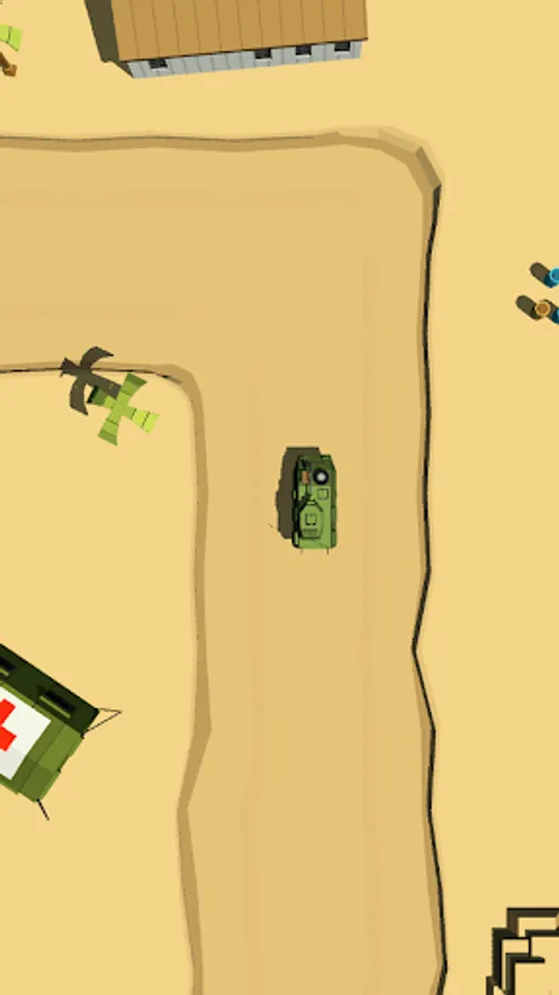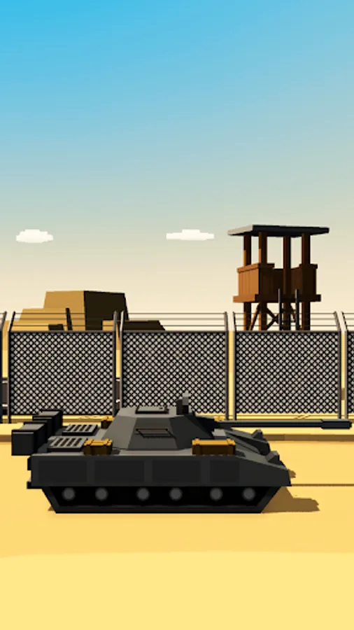 Fast action drifting game with your tank on an endless race track - desert mission. Tap to drift around object and press fire to shoot obstacles.
