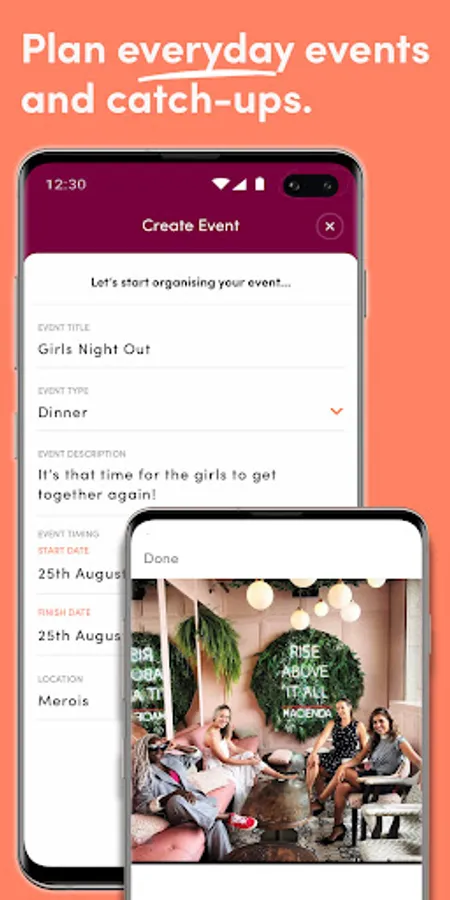 Event Calendar: Quickly see what events you have planned and who with. You can also link your events to your desktop or phone calendars.