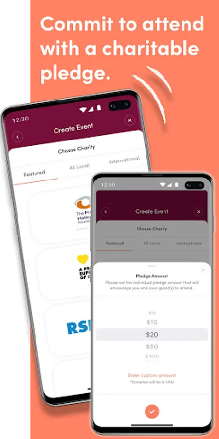 Commit to Attend: Nominate a charitable pledge that your guests agree to when they RSVP. If they show as planned, they get to keep the pledge. If they are unable to attend, the pledge is donated to the chosen charity.