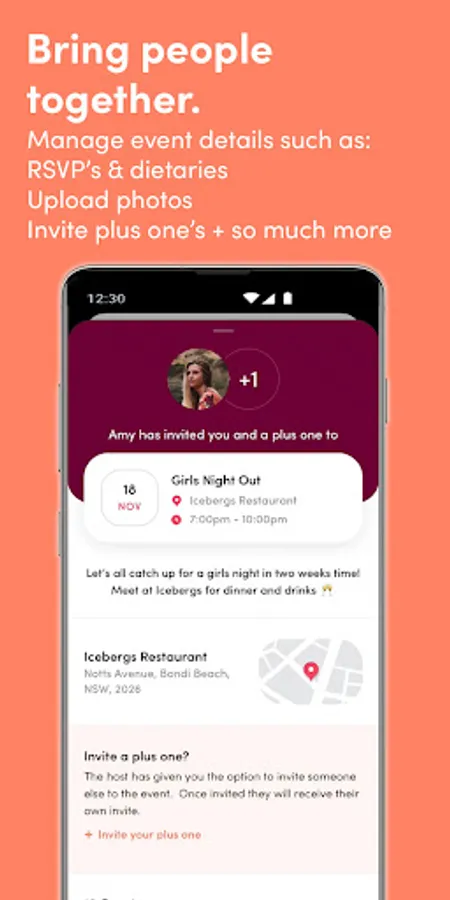 Bring People Together: Manage RSVPs, dietaries, upload event photos and invite plus one’s.