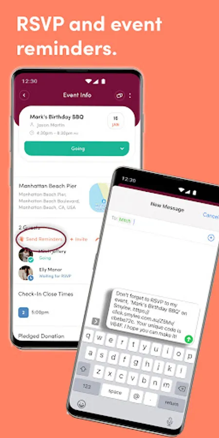 Event Planning: Plan your event on one simple screen and invite your guests through the app, email, or SMS.