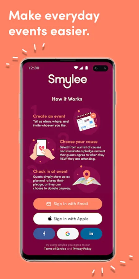 Don’t miss out on the newest app that’s creating positive connections at face-to-face parties, meetups, or events. Smylee is your everyday event planning app that not only helps you to organize an event but also encourages people’s commitment to attend through a charity pledge.