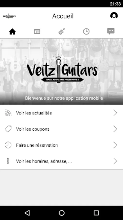 This application allows you to enjoy news and online booking at Veitz Guitars, your music store at 10 Rue Fix in Strasbourg 67100.