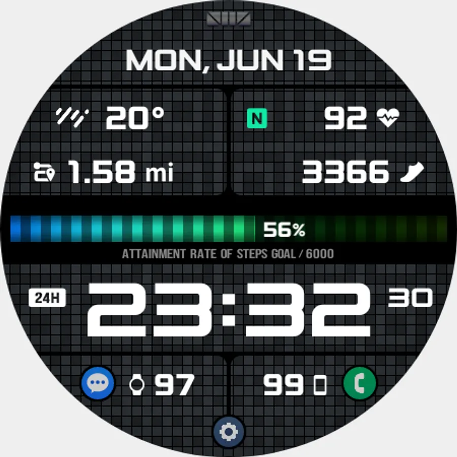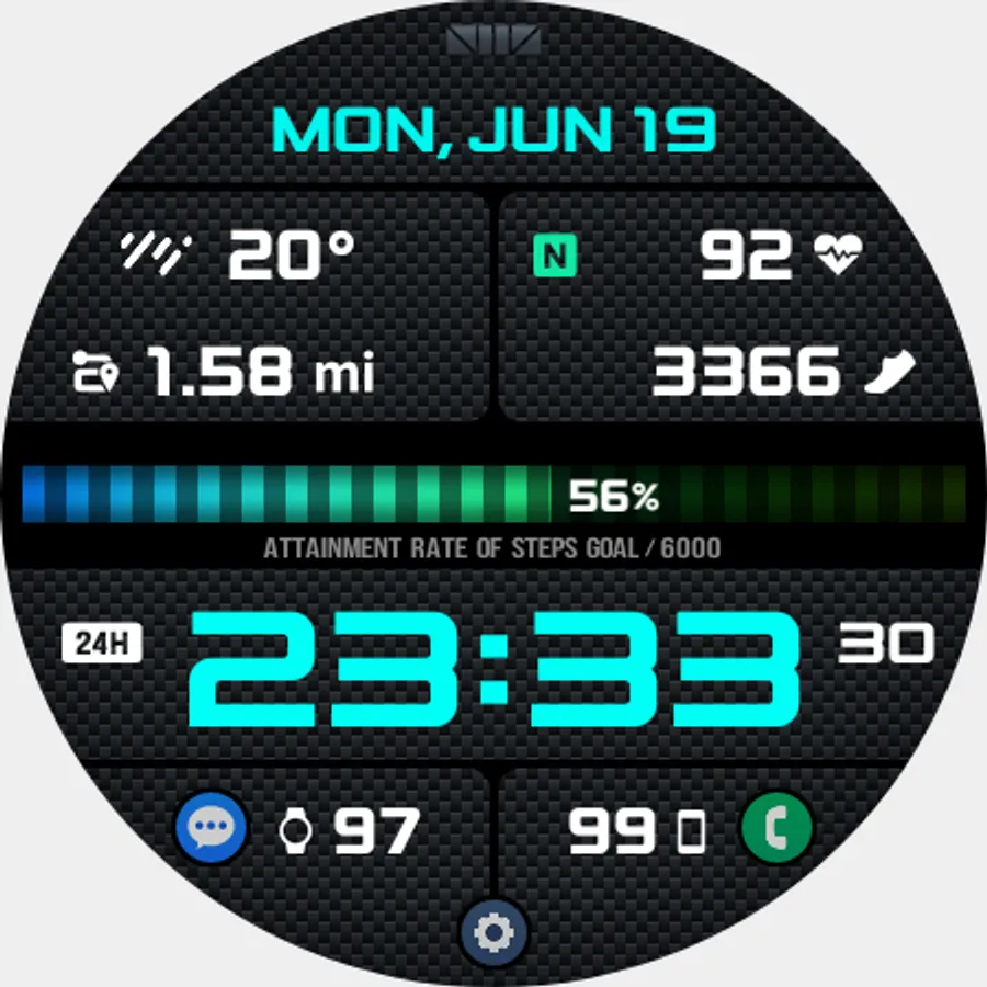 This is a Digital Watch face providing useful informations for your health, various watchface theme and colors.