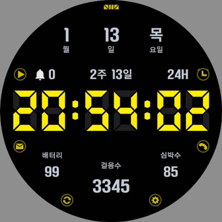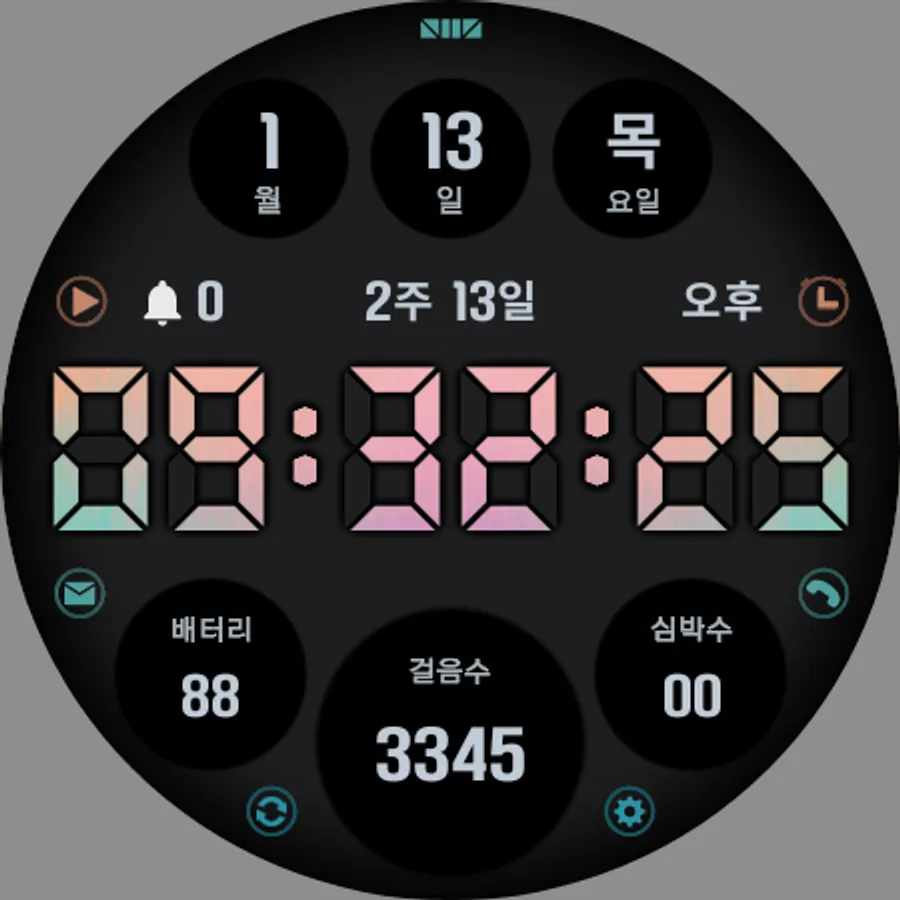 This is a Digital Watch face providing useful informations for your health, various watchface theme and colors.
