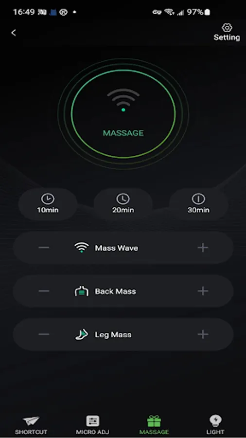 Also there are keys to control the massage and LED lamp