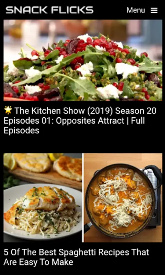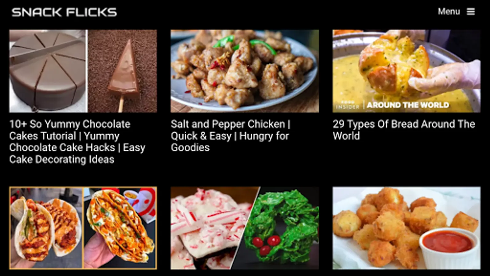 User submitted videos showcased on SNACK FLICKS Food Cooking Nutrition and Health website and app.