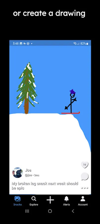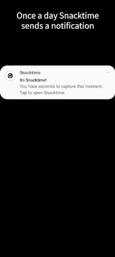 Once a day we send a notification to your device. It's Snacktime! You have 5 minutes to share your moment. Choose to capture a picture, create a drawing, shoot a video, and more. When we send a notification, you share the moment you're in. Don't let the time run out or you'll have to wait until tomorrow for your next Snacktime. That means that all content on Snacktime is 100% original and authentic.