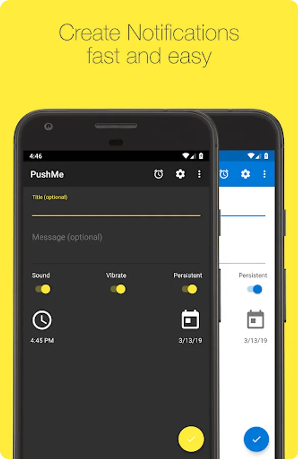 New: Write lists of all sorts with multiline support for the message field. Notify yourself with a quick reminder by writing your grocery list and shopping notes and receive it when you are at the grocery store. If you are still in the car simply repeat the note with the re-schedule button to get the same notification again in a few minutes. PushMe is the simplest way to notify yourself with a reminder to not forget anything again.